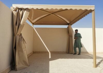 مرحبًا بكم في فنون المدينة للمظلات وبيوت الشعر، حيث نلتزم بتقديم حلول مبتكرة عالية الجودة لتلبية احتياجاتكم في تصميم وتركيب المساحات الخارجية. تأسسنا بهدف تحويل الأفكار إلى واقع، حيث نقدم مجموعة واسعة من الخدمات تشمل المظلات، السواتر، البرجولات، الخيام الملكية، بيوت الشعر، سندوتش بنل، الشبوك، المسابح، هناجر، والقرميد.